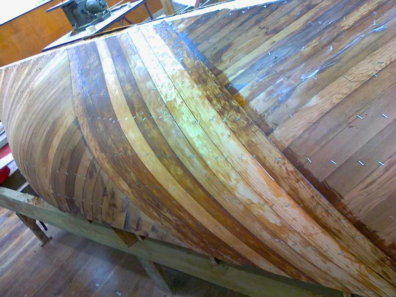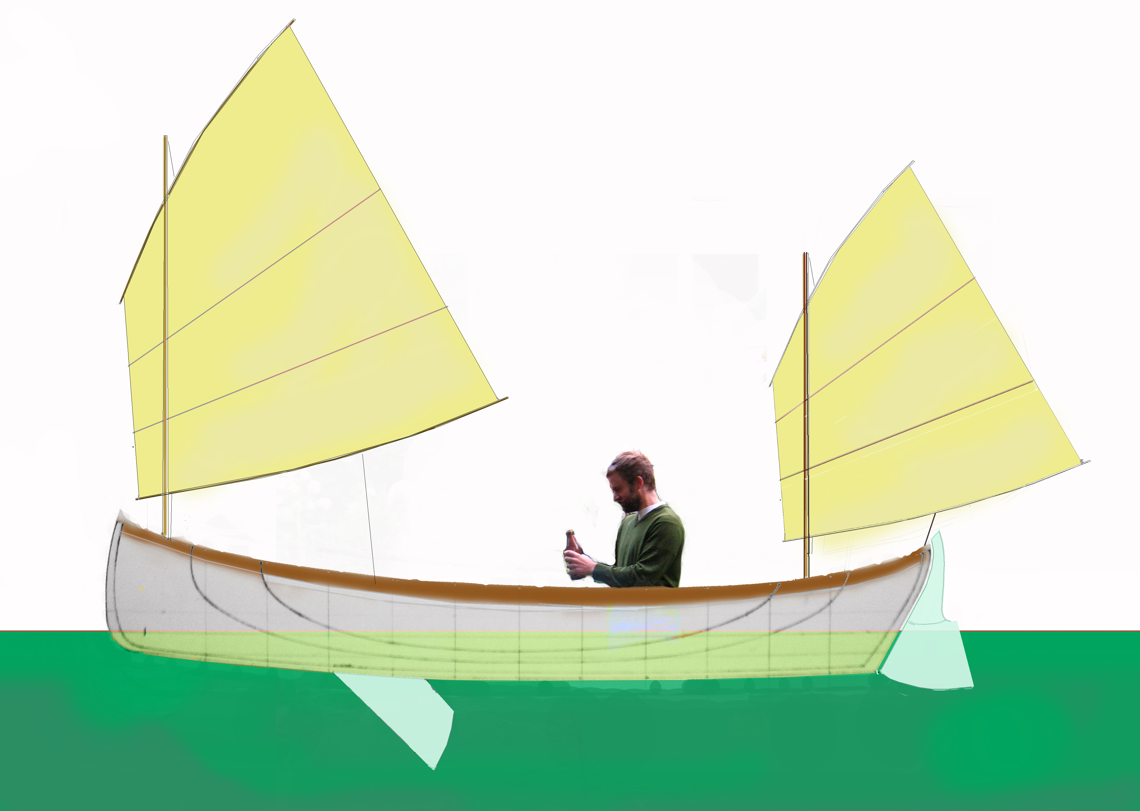 Here are some photos from 2 weeks ago of the second layer of planking getting glued on, and a few digital (!) sketches of potential sail plans. These are purely aesthetic sketches, from which I’ll pick the one I like most and tweak with some calculations to get the Centre of Lateral Resistance (CLR) and Centre of Effort (CoE) about right.
