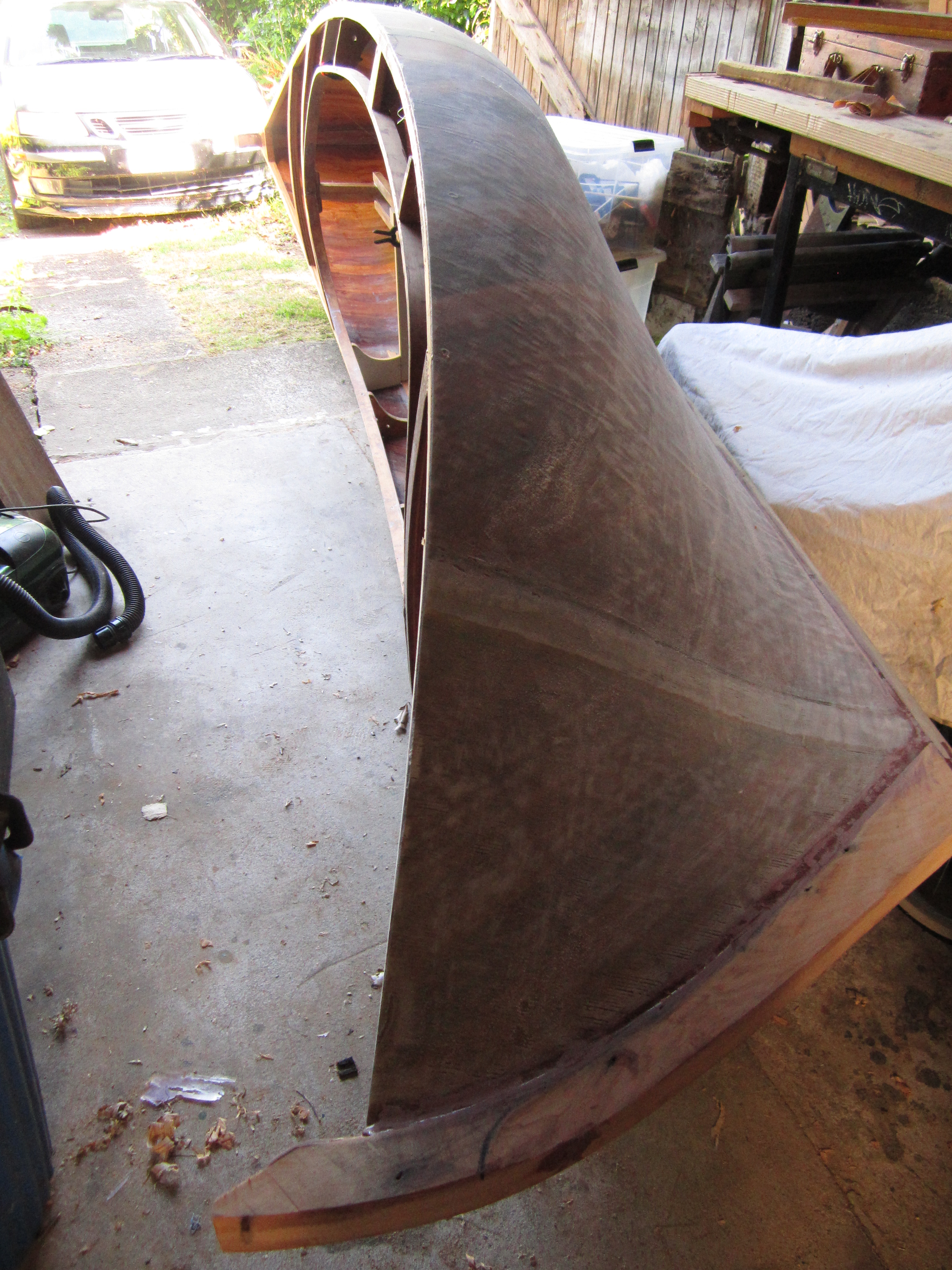 I’ve been making tentative steps into the world of filling and fairing. This was some of the first coat of dark brown underwater epoxy filler to the starboard side.Since then I’ve actually switched to a different compound (410 microlight) that’s easier to use and fine on a boat kept on dry land most of the time.