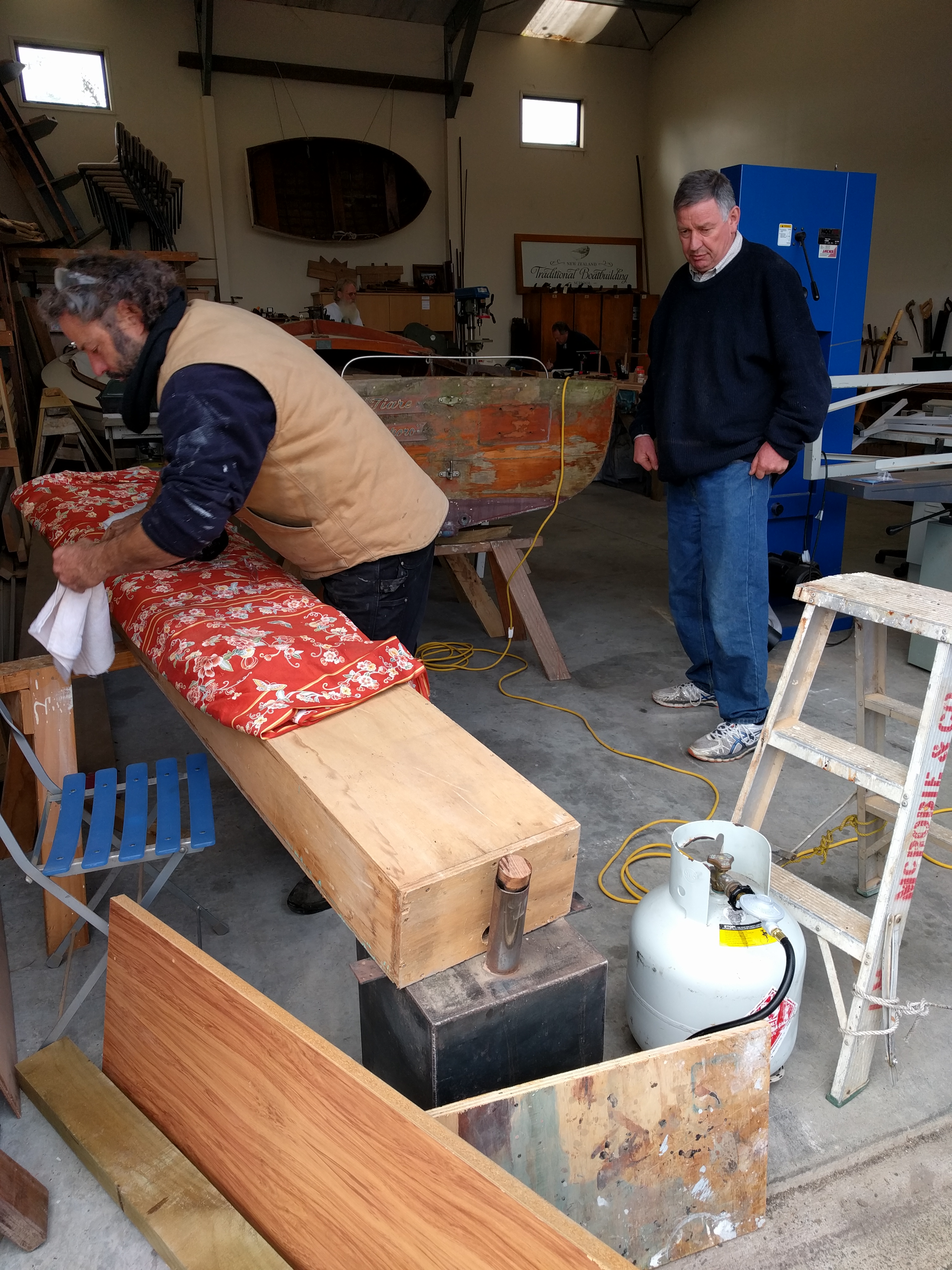 Last Friday I had the privilege to attend a day class at the fabulous and newly relocated New Zealand Traditional Boatbuilding School (NZTBS). The subject of this class was the replacement of steam-bent ribs (frames) in traditional kauri clinker boats.
