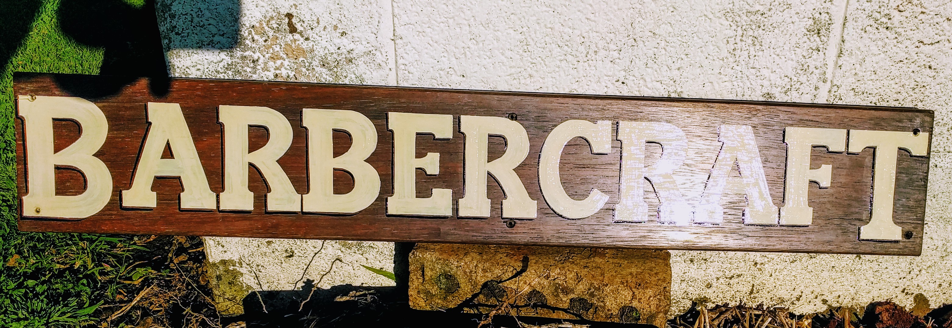 A wee sign I just did for the upcoming BarberCraft pop-up feature at Fashion Week, commisioned by the honorable J. Maloney, esquire. One Shot lettering enamel on recycled Kwila timber.