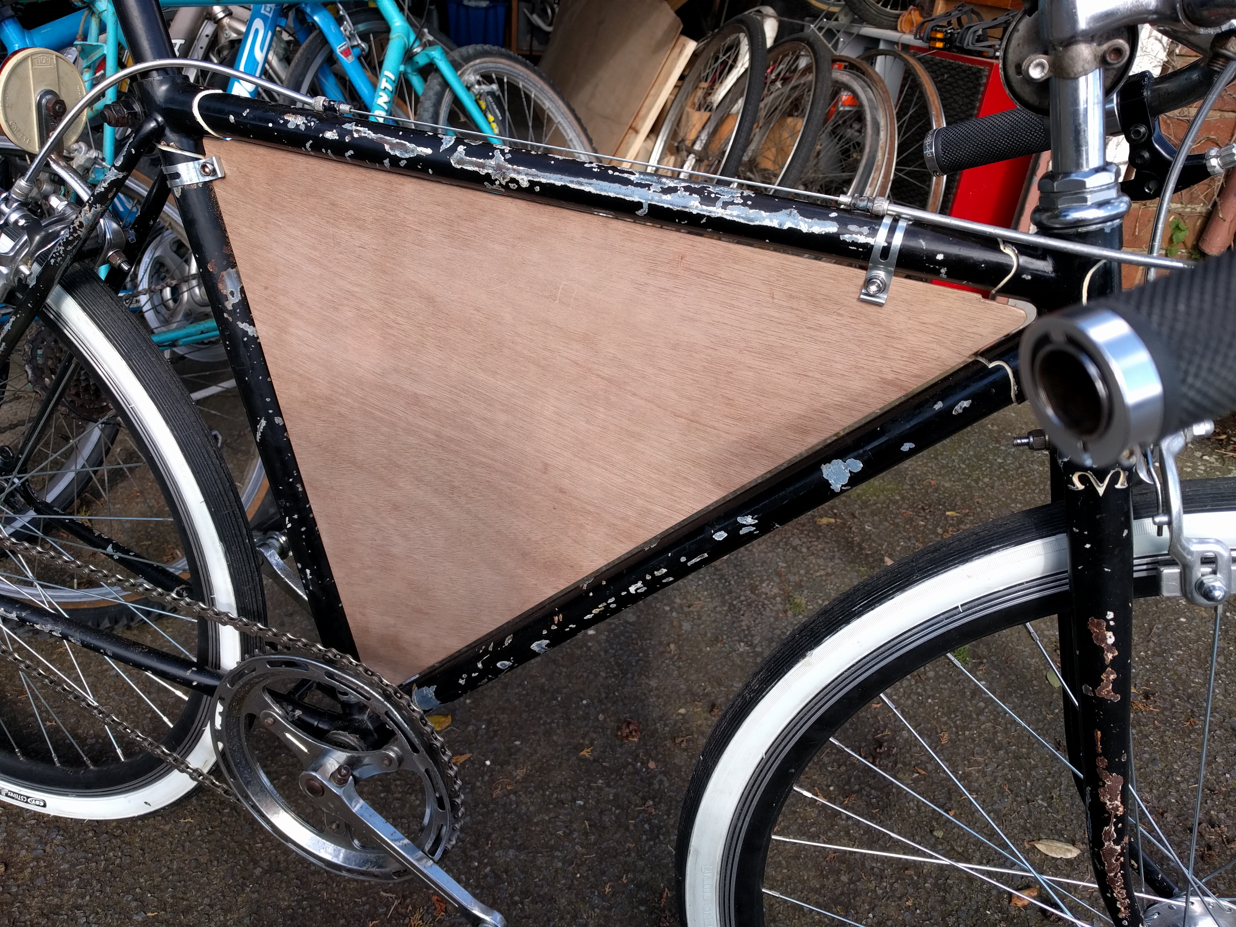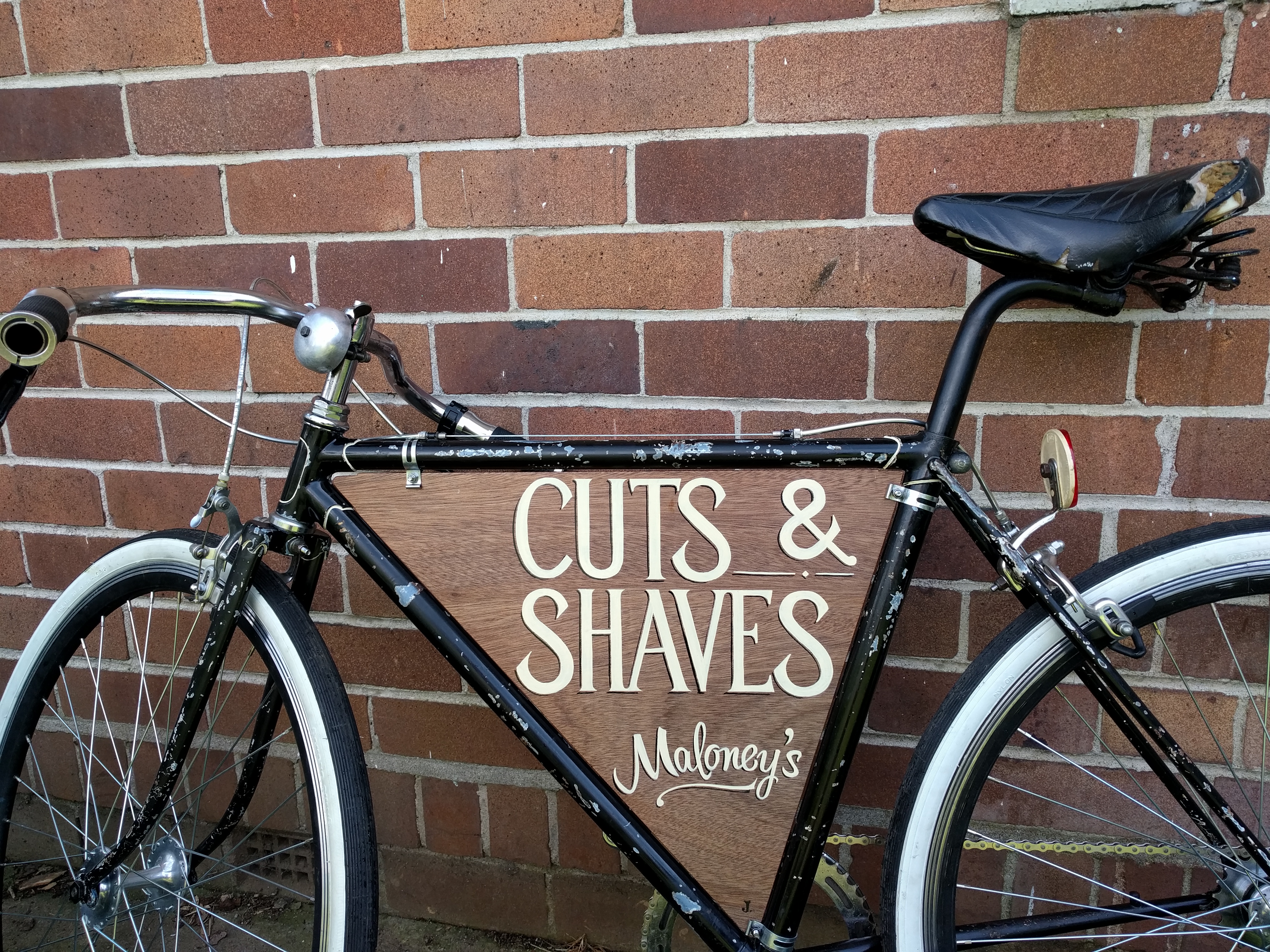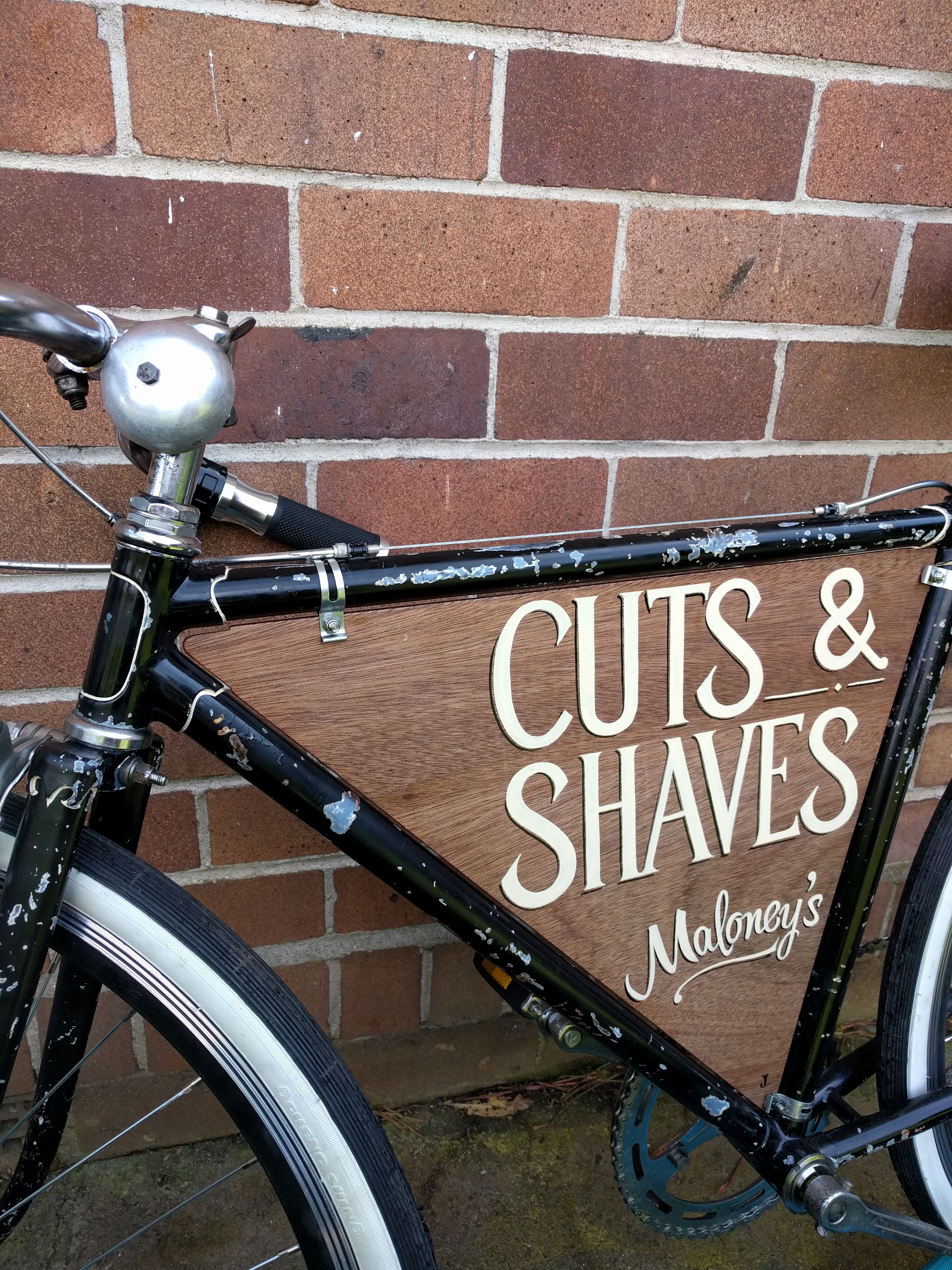 I’m quite proud of this result, and really enjoyed the process, as I got to draw on several skill sets: my many years of experience fixing old bikes, woodwork skills and my relatively new-found passion for handpainted signs.